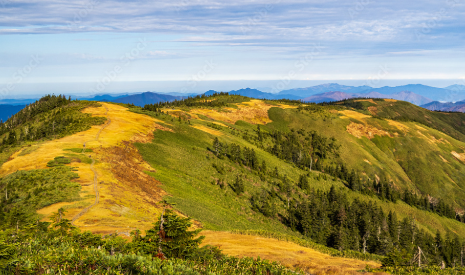 紅葉の百名山。日帰りでも行ける山ですが、山の上で泊まり、夕日や朝日を浴びて褐色に染まった湿原風景を期待します。日帰りでは味わえない贅沢な時間です。